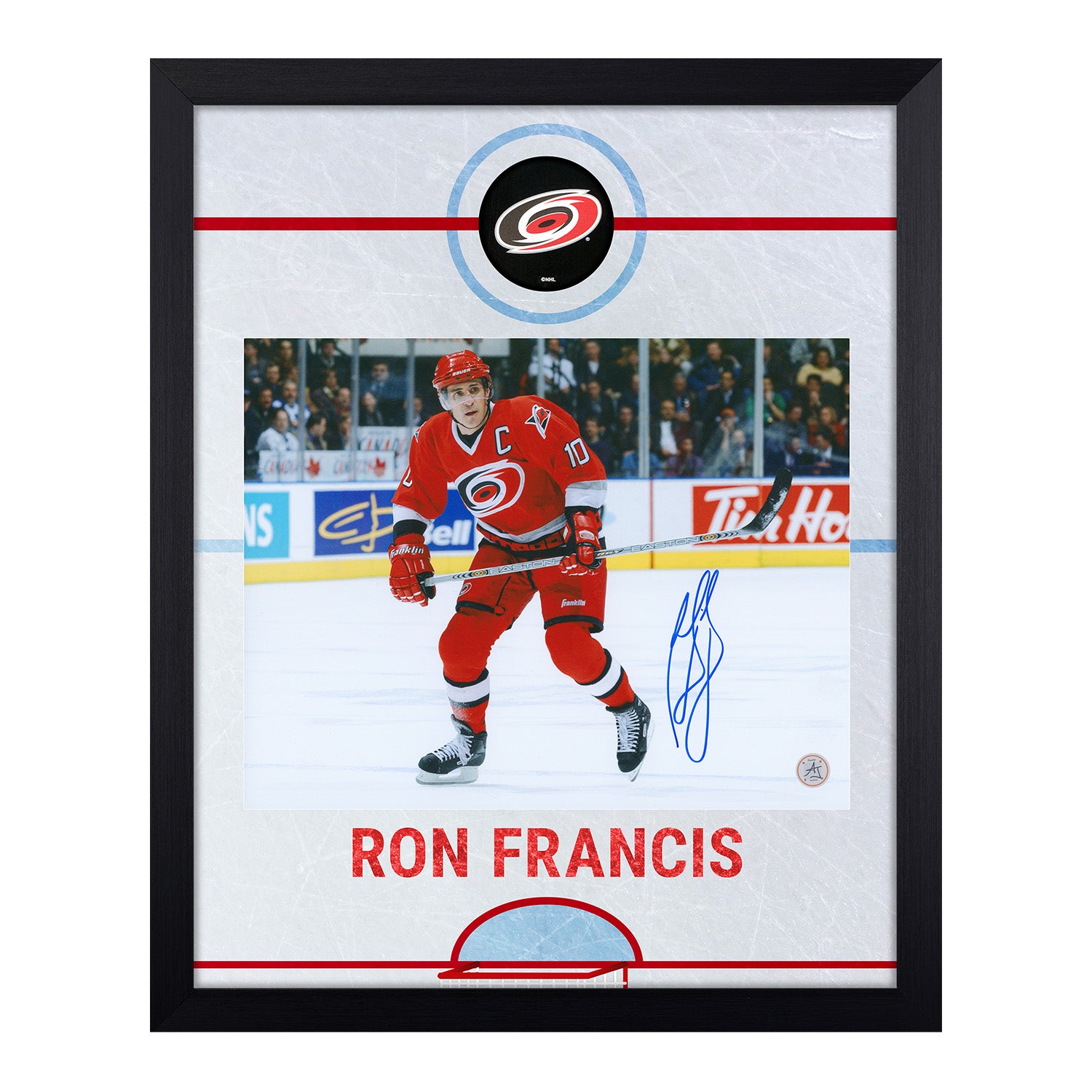 Ron Francis Autographed Carolina Hurricanes Graphic Rink 19x23 Frame