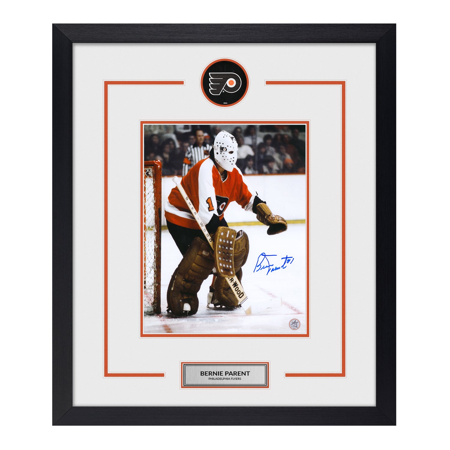 Bernie Parent Signed Philadelphia Flyers Puck Logo 23x27 Frame