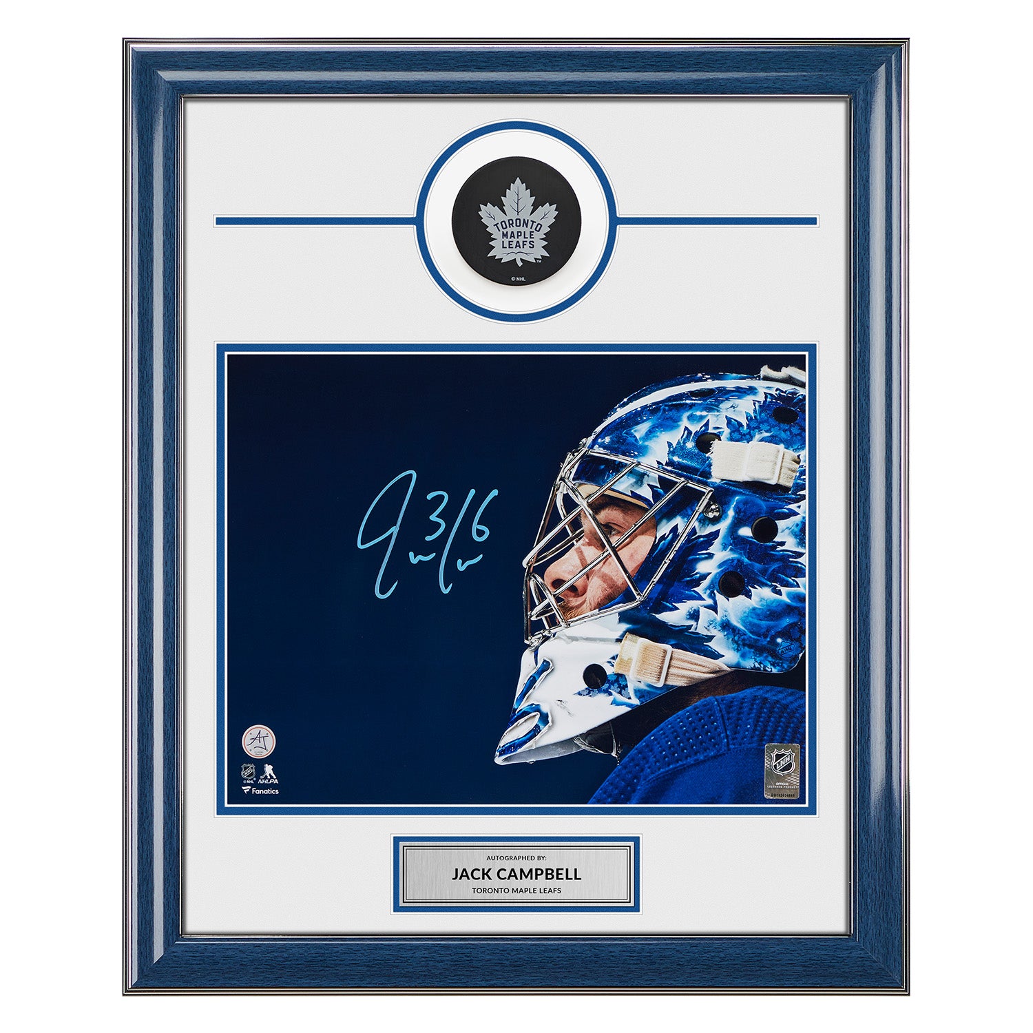 Jack Campbell Toronto Maple Leafs Signed Mask Closeup 20x24 Puck Frame