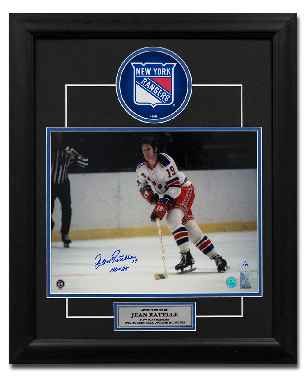 Jean Ratelle New York Rangers Autographed Large Logo 20x24 Frame #/19