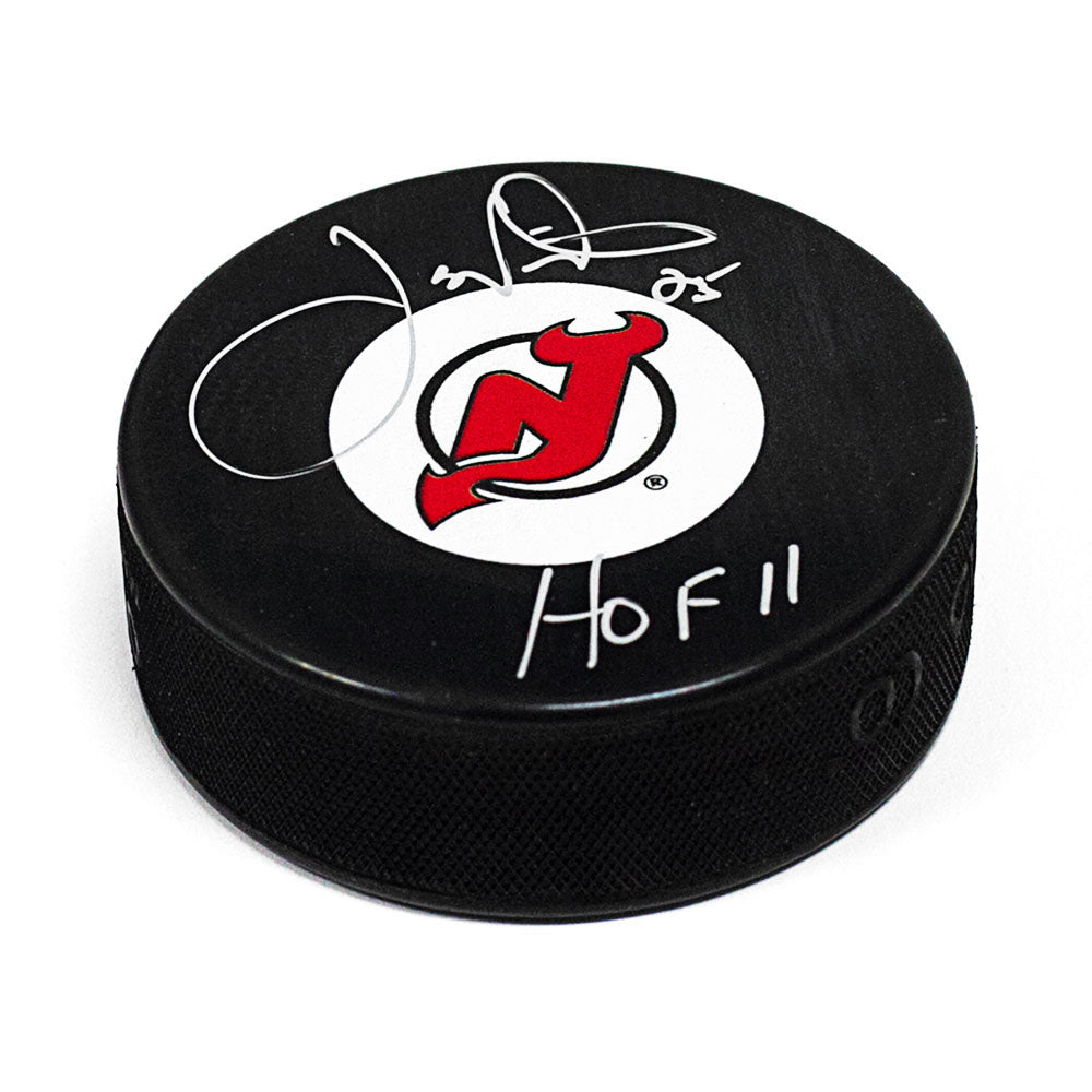 • This puck is signed and inscribed with HOF 11 by Joe Nieuwendyk.