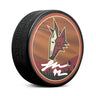 Logan Cooley Signed Arizona Coyotes Stitch Design Hockey Puck