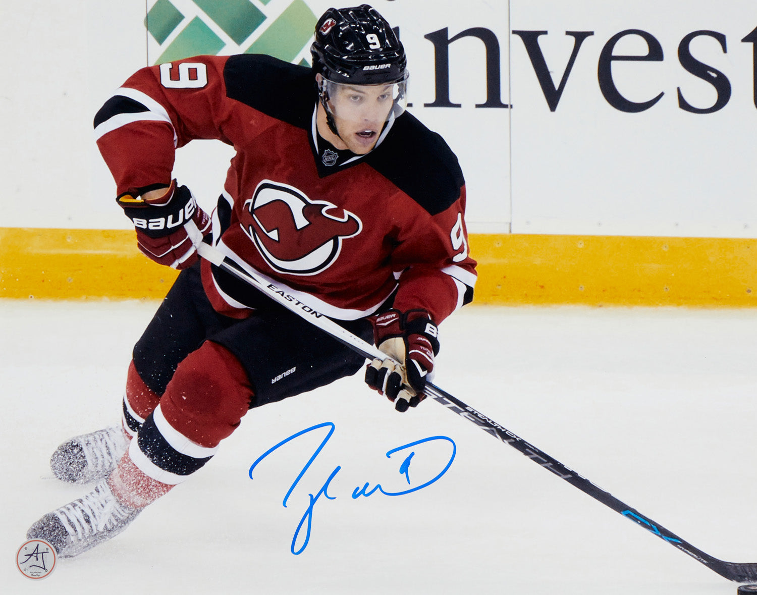 Taylor Hall Signed Devils Playmaker 11x14 Photo
