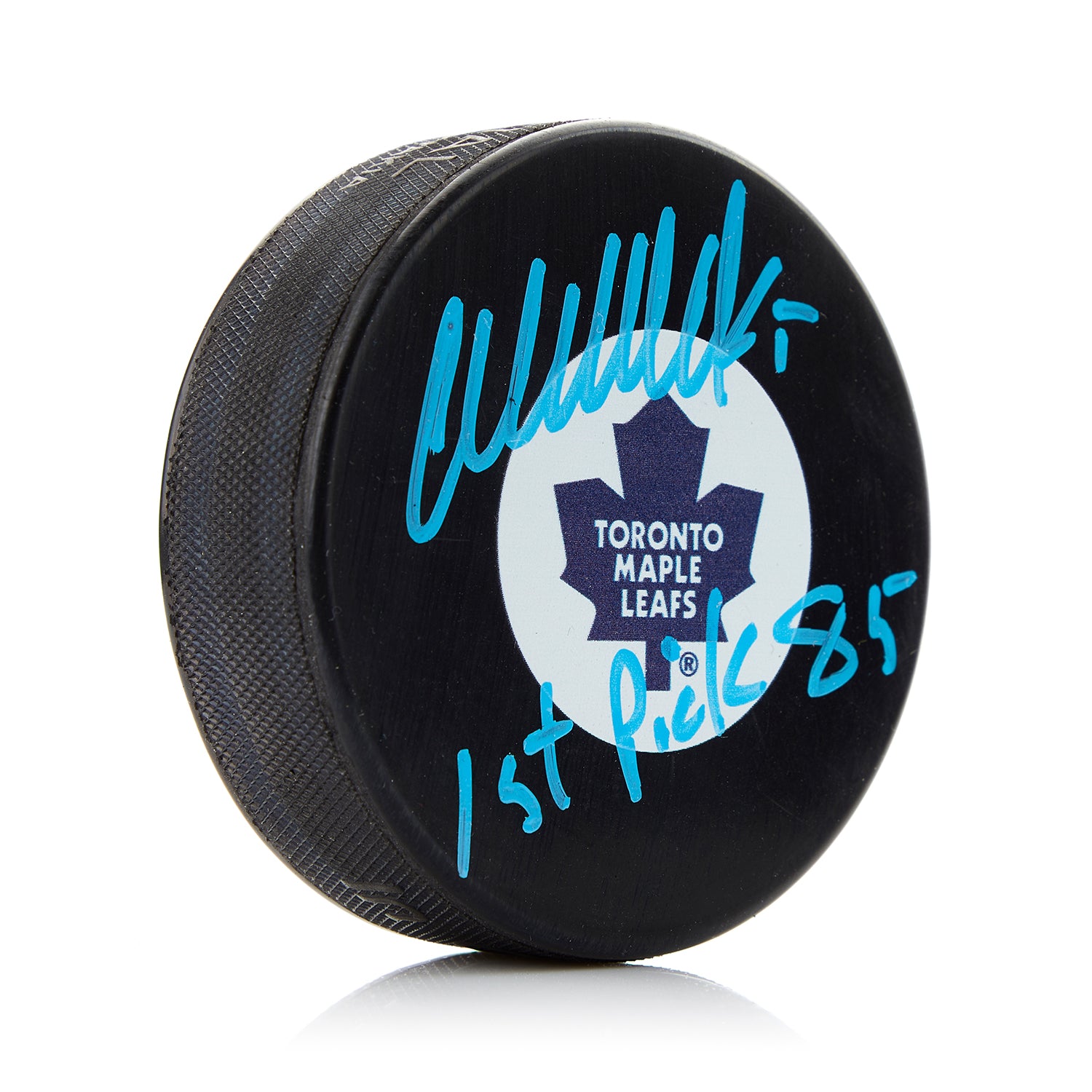 • Wendel Clark hand-signed puck with 1st Pick 85 inscription.