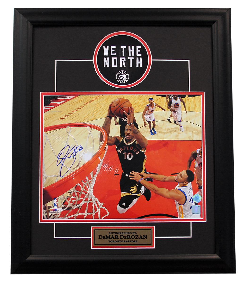 DeMar Derozan Toronto Raptors Autographed Netcam Dunk Over Curry 20x24 Frame