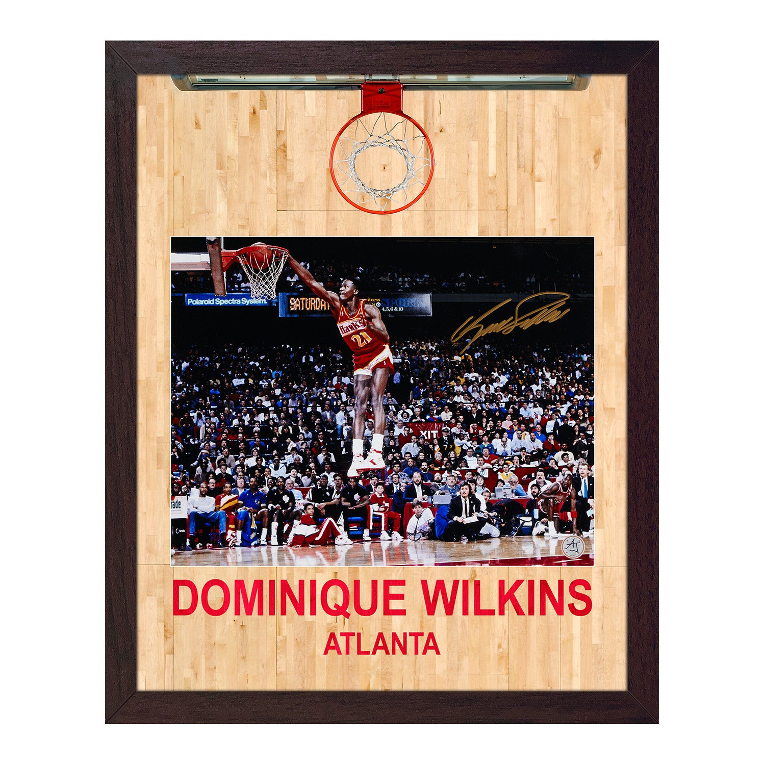 Dominique Wilkins Signed Atlanta Hawks Aerial Hoop Graphic 19x23 Frame