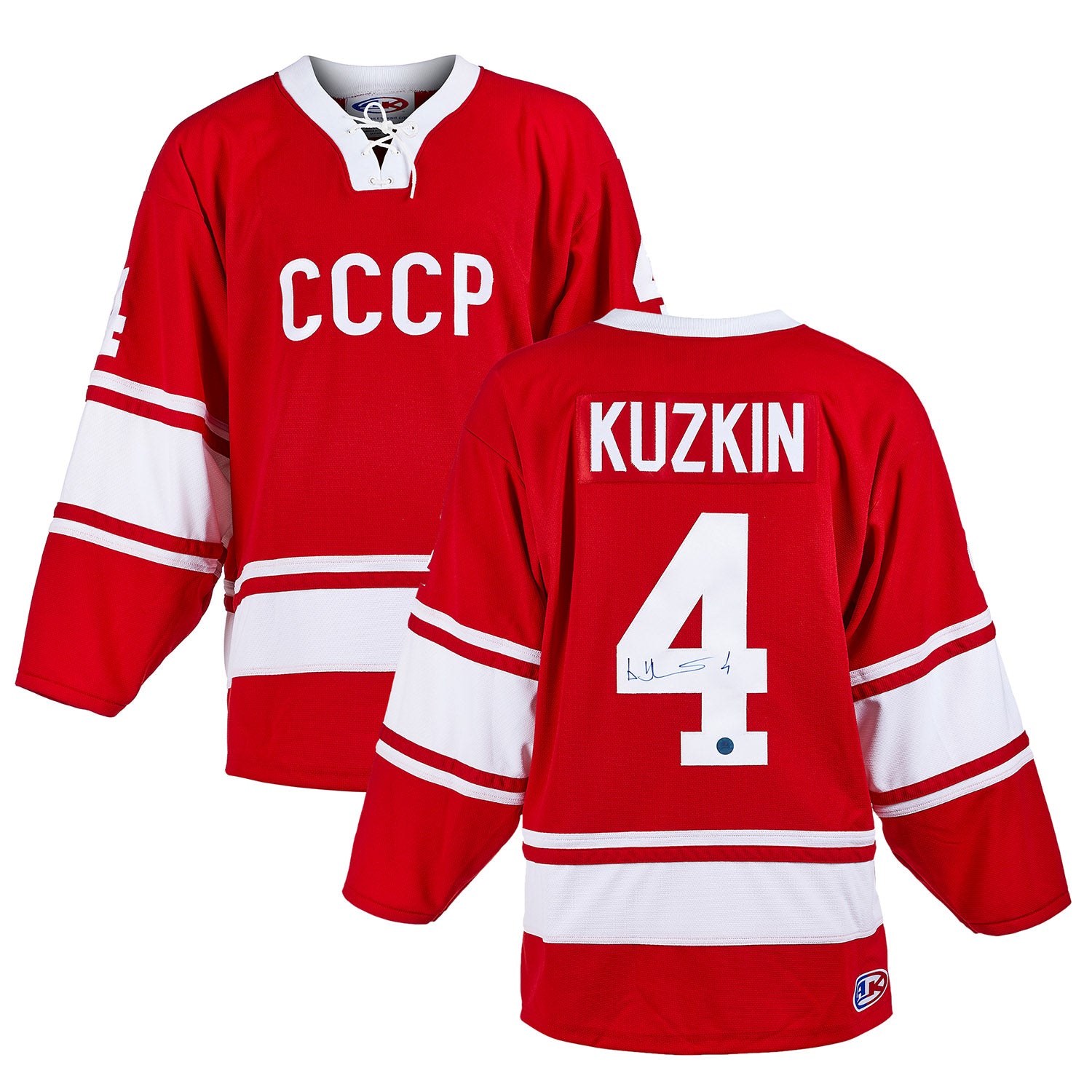 • This hockey jersey is hand-signed by Viktor Kuzkin.