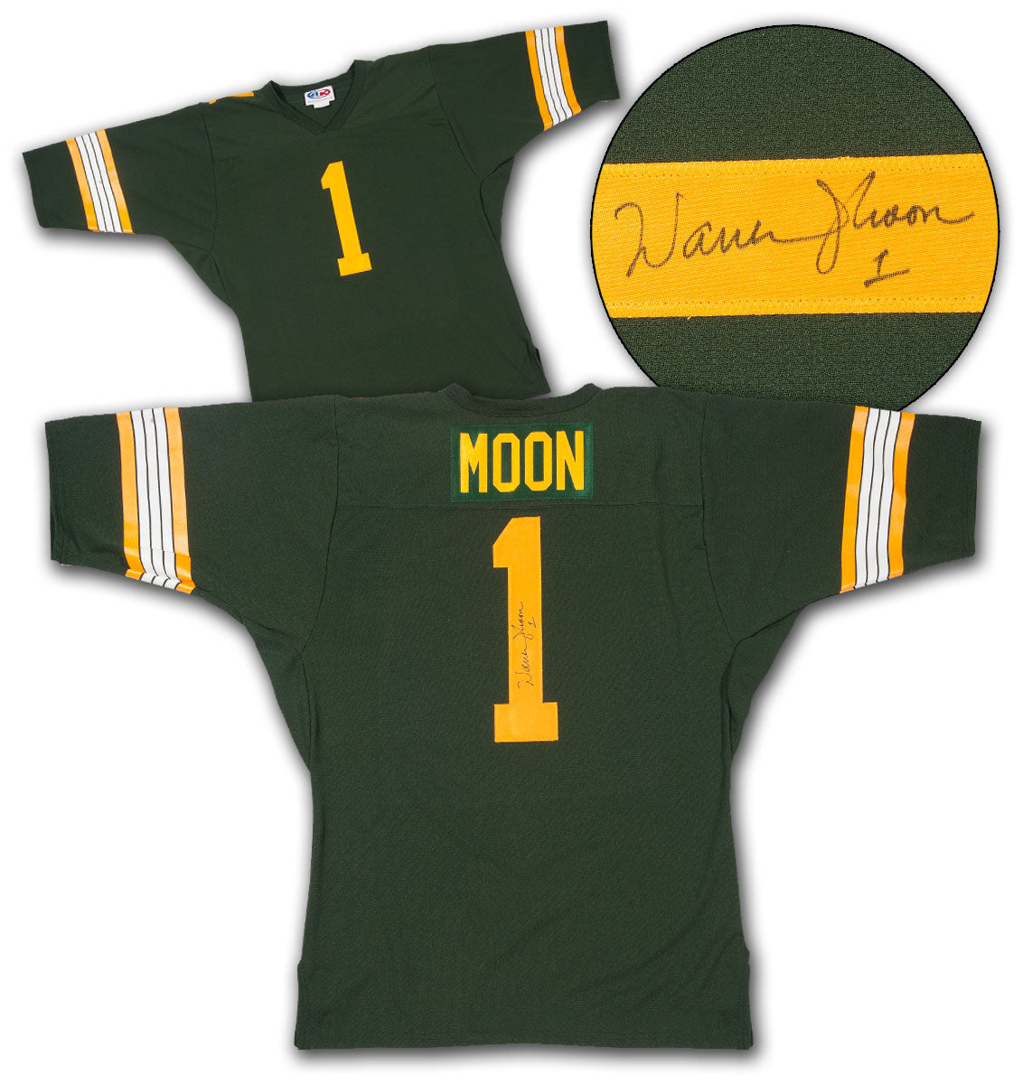 • This football jersey is hand-signed by Warren Moon.