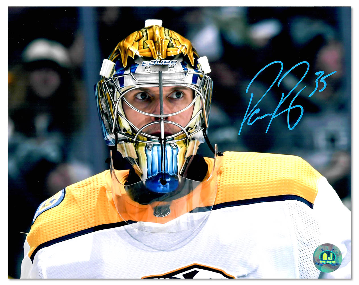 Pekka Rinne Autographed Nashville Predators Mask Close-Up 8x10 Photo