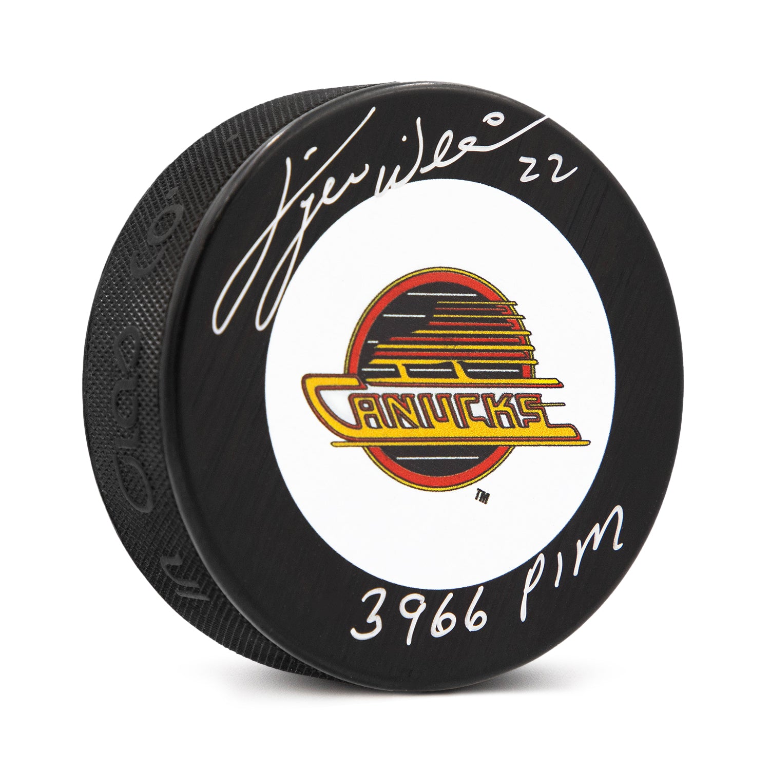 Tiger Williams Signed Vancouver Canucks Retro Logo Puck with 3966 PIM Note