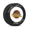 Tiger Williams Signed Vancouver Canucks Puck with 3966 PIM Note