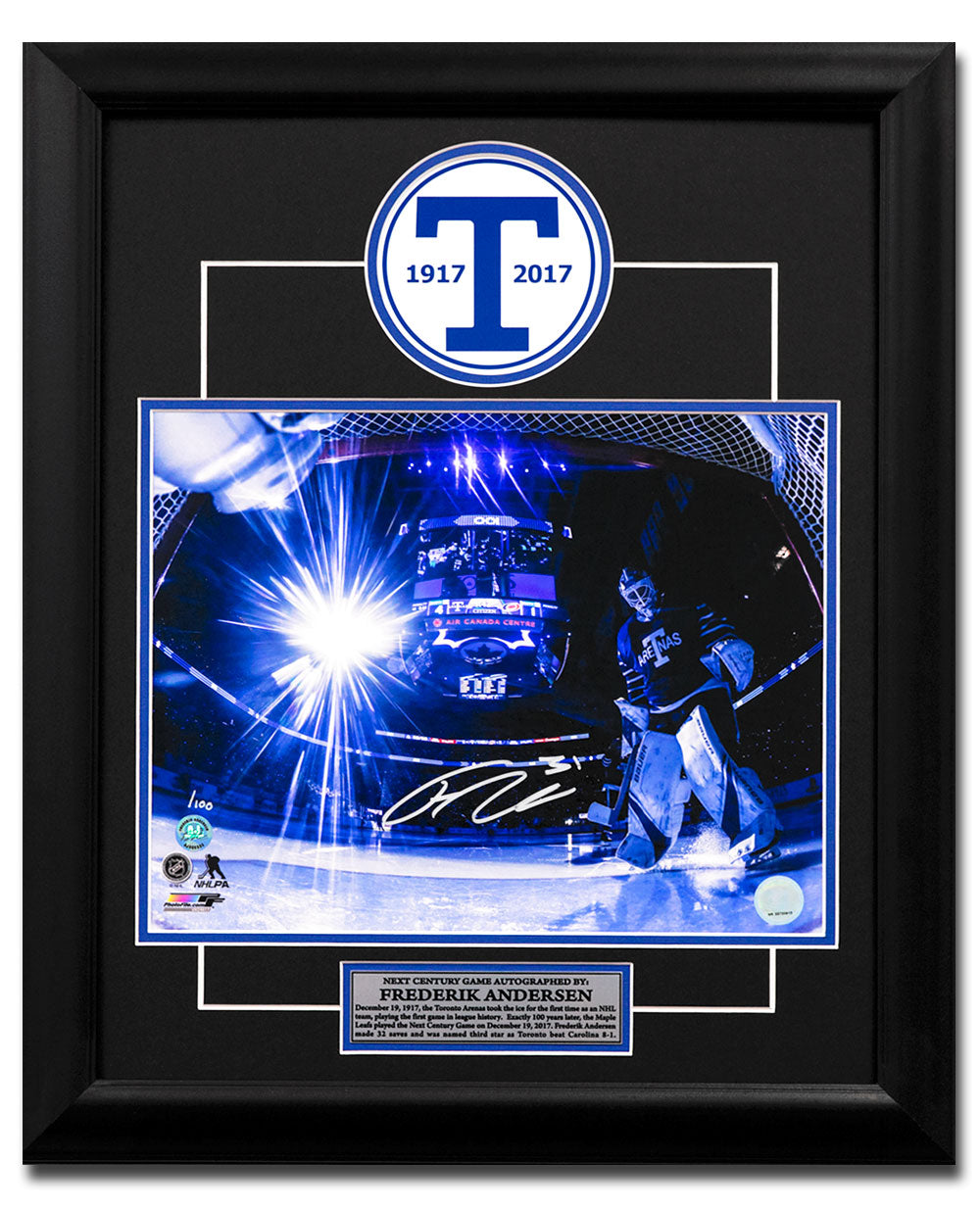 Frederik Andersen Toronto Arenas Signed Next Century Game 20x24 Frame /100