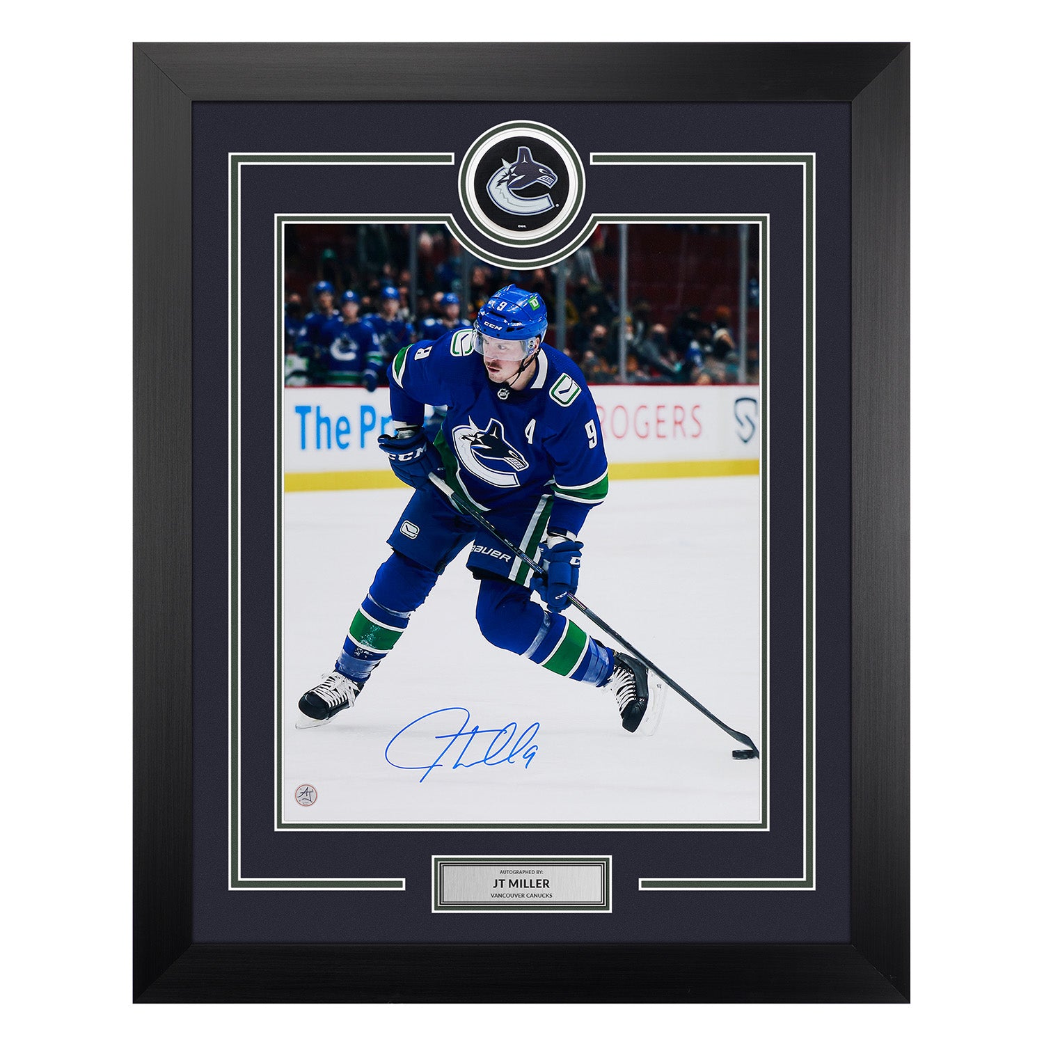 JT Miller Autographed Vancouver Canucks Puck Logo 26x32 Frame