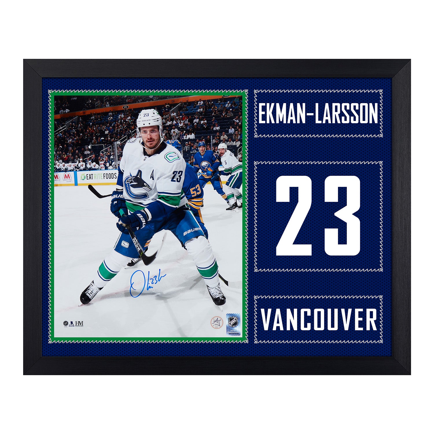 Oliver Ekman-Larsson Signed Vancouver Canucks Uniform Graphic 19x23 Frame. Product Code EKMOVCA21P4AF1.
